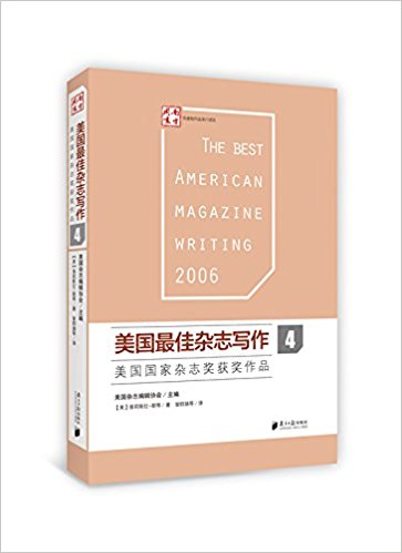 【简介】该书为2006年美国杂志界最高奖项“美国国家杂志奖”获奖文章的精选辑。收录了获得该年度较佳特稿、新闻报道、专栏与评论、批评与评论、人物特写、散文、公共利益及小说等大奖的十余篇杰出杂志文章,以杂志特有方式聚焦了人类基因组计划、美国商人替政府“售卖”战争、美国如何以商业思维为伊战征兵、美国电台舆论场的运作方式、美国经济社会生态失衡的冲突以及全球性气候等美国问题或美国人关注的问题。细节翔实而精当,叙述清晰而宏大,洞察深刻而透彻,极富纪实与思辨的理性探索,既是一本了解美国2012年的“干货”版年鉴,亦是新闻工作者、文学爱好者的特稿盛宴、写作范本