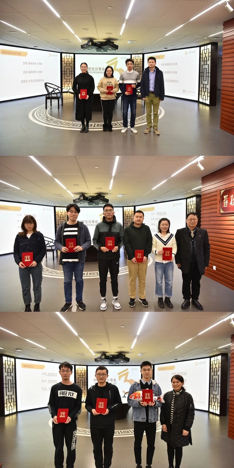 钟鸣医生、颜志渊教授、毛华副部长为2020年度优秀志愿者、医科馆达人颁奖
