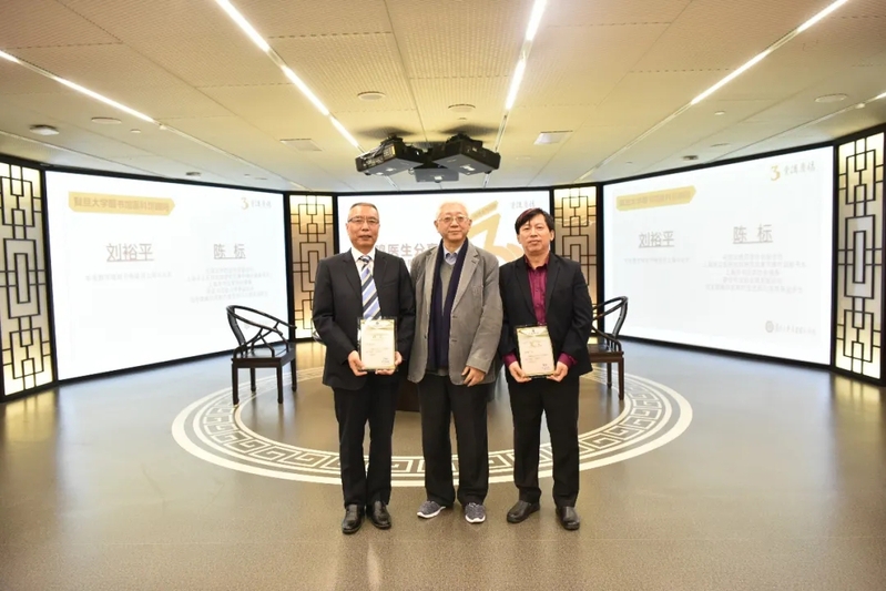 医科新馆自开馆以来,不管是上医人文库的手稿史料、或墙面上的一幅幅书画,都透露着复旦上医深远的历史沉淀和医科馆浓厚的人文氛围。在医科馆建设过程中得到了来自社会各界优秀人士的帮助,在仪式上,图书馆新聘两位艺术工作者:中央数字电视书画频道上海站站长刘裕平先生和国宝鲁庵印泥制作技艺传习所常务副所长陈标先生为医科馆顾问。